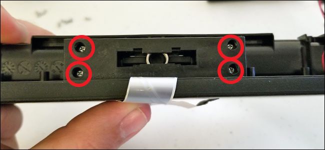 Con estos tornillos retirados, podrá sacar esta pieza de plástico y exponer la placa de circuito de la base.