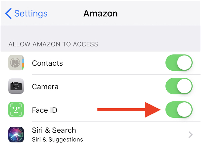 Encontrarás todos los permisos de esa aplicación aquí. Para eliminar el acceso a Face ID, mueva el interruptor a la posición «apagado».