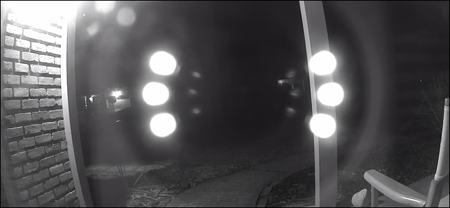 Las opciones aquí varían de una cámara a otra. Algunas cámaras, como la Wyze Cam , solo te permiten apagar todo. Cuando el modo nocturno está desactivado, las luces infrarrojas no se encienden. Dependiendo de la cámara, su video puede ser en color. Como puede ver arriba, la imagen es lo suficientemente clara como para ver el rostro de cualquiera que se acerque a su puerta por la noche.