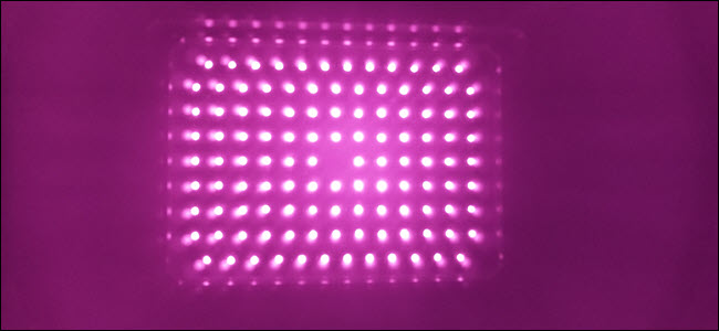 Y, aunque los focos tradicionales funcionan, un iluminador de infrarrojos es una solución aún más eficaz. Piense en ello como un reflector, pero, en lugar de utilizar luz del espectro visible, emite luz infrarroja. La imagen de arriba muestra el iluminador de infrarrojos encendido. Pero, cuando miras el dispositivo en persona, todo lo que verás son luces púrpuras tenues.