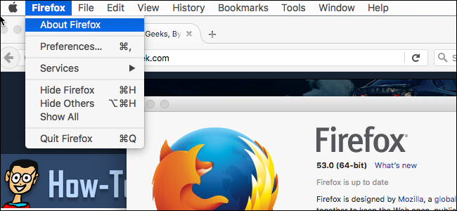 En una Mac, el proceso es un poco diferente. Simplemente haz clic en «Firefox» en la barra de menú y luego en «Acerca de Firefox».