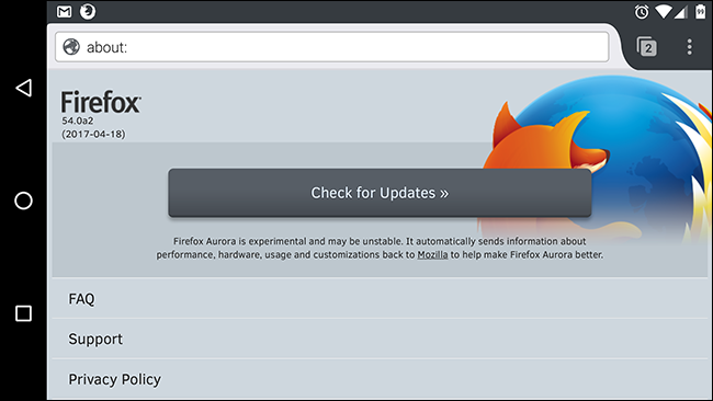 Firefox en el escritorio está disponible para Windows, macOS y Linux, pero también hay versiones móviles disponibles. En la Play Store de Android, el programa está disponible en versiones estable , beta y “ Aurora ” (desarrollador), y las versiones generalmente corresponden a las versiones de escritorio. También está disponible una versión nocturna, pero debe descargarse manualmente en esta página e instalarse como un archivo APK que no es de Play Store.